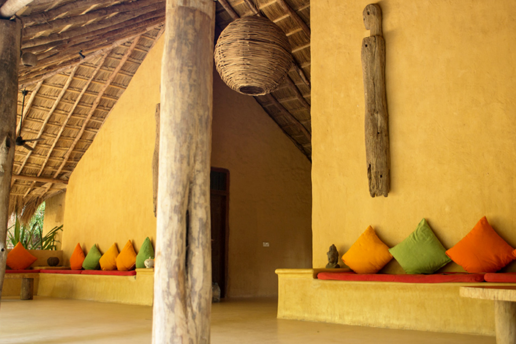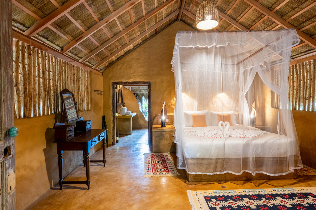 With its indigenous inspired design, each cabana is set in its own quarter-acre garden. The double bedroom opening out onto a front porch with a built-in seating area.