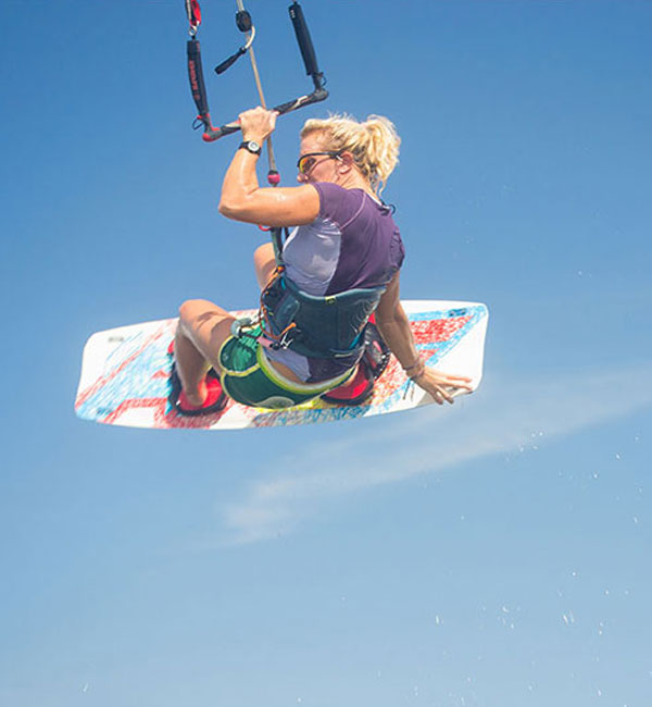 It’s the ideal starting point for beginners with Kitesurfing instructors who will guide you through your very first moves and safety measures at Kitesurfing as an adventure sport.